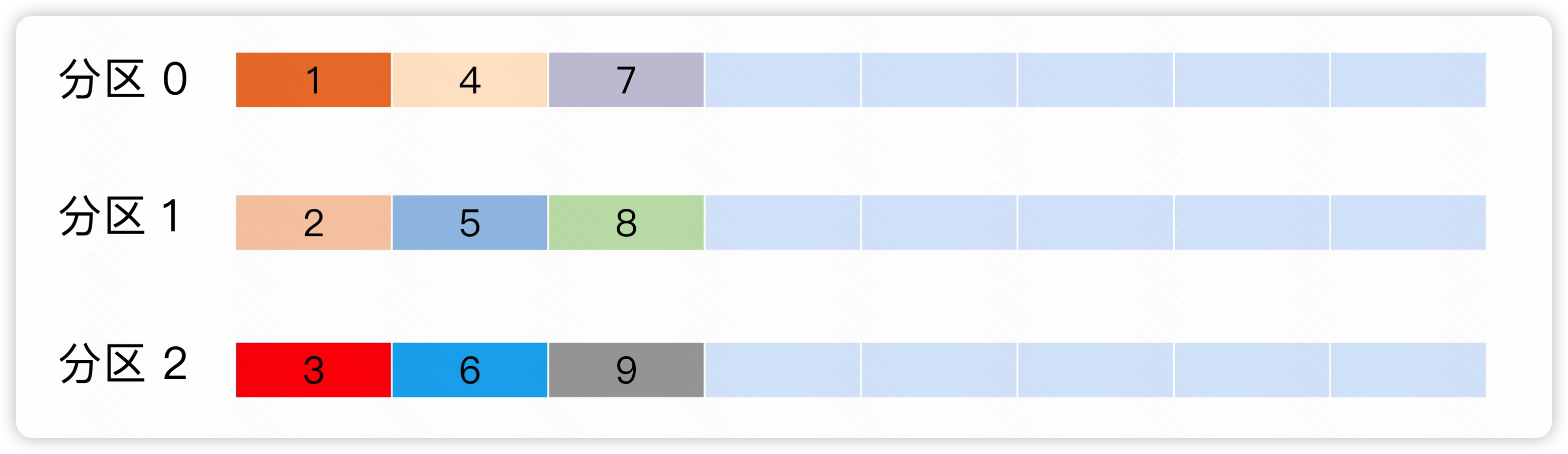 轮询策略是 Kafka Java 生产者 API 默认提供的分区策略。轮询策略有非常优秀的负载均衡表现,它总是能保证消息最大限度地被平均分配到所有分区上,故默认情况下它是最合理的分区策略,也是最常用的分区策略之一。