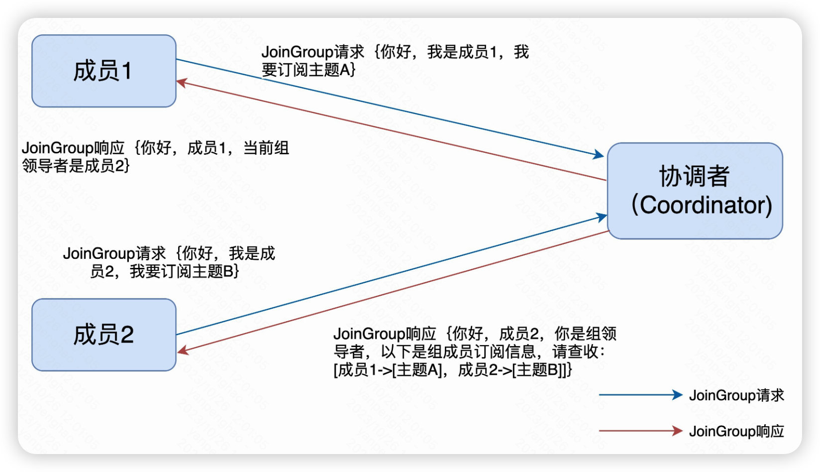 从消费者视角来看,重平衡操作有两个流程分别是加入组和等待领导消费者分配消费方案,对应的两种请求分别是:JoinGroup请求和SyncGroup请求