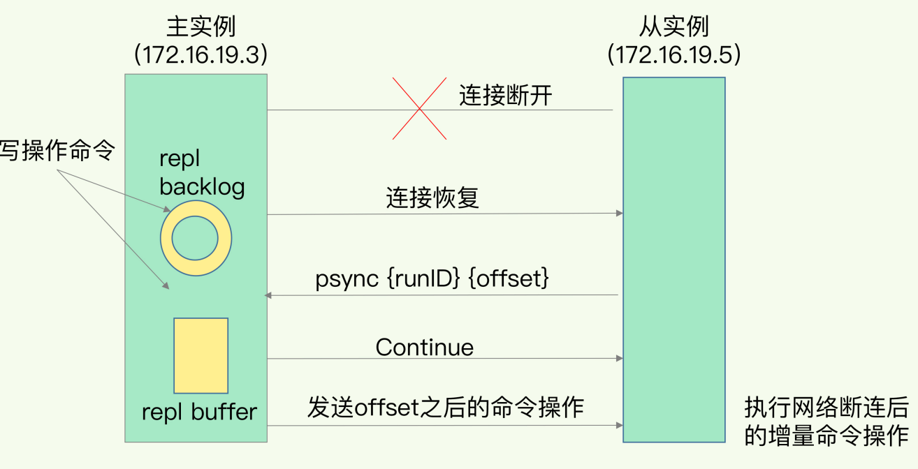 - 作用:汇报slave自己的复制偏移量,获取最新的数据变更指令;判断master是否在线