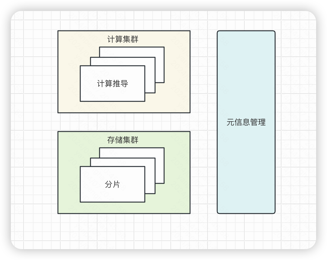 - 原生分布式数据库(NewSQL)。基础是一个 K/V 键值对数据库,其计算和存储分离,最小的存储单位称为一个分片,可以动态扩展。