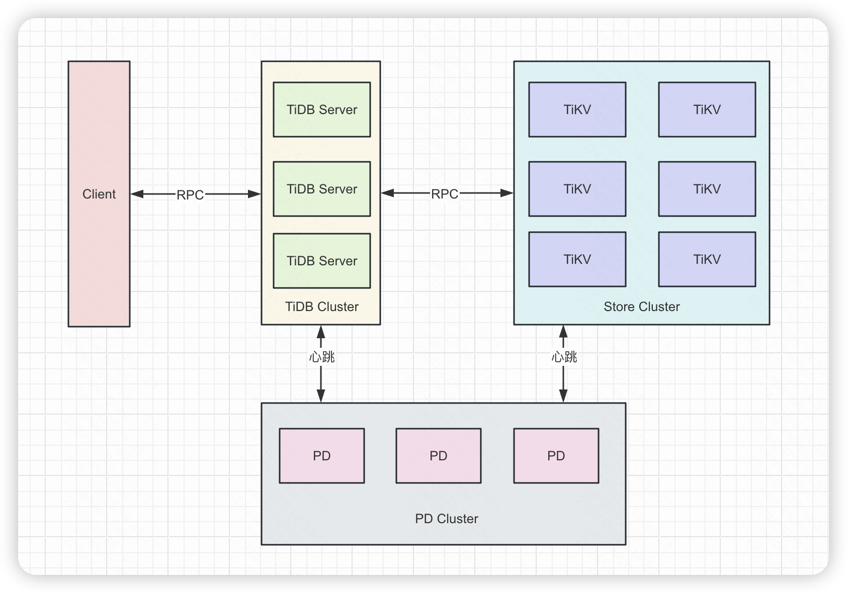 - PD:负责调度整个存储引擎,掌握全局信息,可以对全局进行调度,作为一个中心节点,实现对系统的整体状况进行把控和调整。比如新增节点时数据的分化迁移,主从节点数量的控制,请求负载均衡、管理节点状态,包括手动上线/下线节点,以及自动下线失效节点。PD 不断的通过 Store 或者 Leader 的心跳包收集信息,获得整个集群的详细数据,并且根据这些信息以及调度策略生成调度操作序列,每次收到 Region Leader 发来的心跳包时,PD 都会检查是否有对这个 Region 待进行的操作,通过心跳包的回复消息,将需要进行的操作返回给 Region Leader,并在后面的心跳包中监测执行结果。
