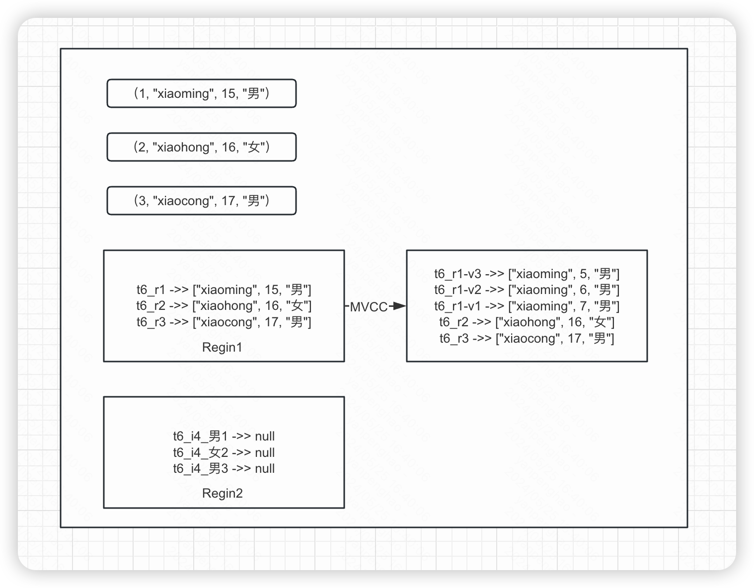 单体数据库通常使用 MVCC 来维护一份数据的历史版本,通过全局递增的事务管理器为每个事务分配一个事务 id,通过分配活跃的事务id 列表来实现不同的隔离方式。